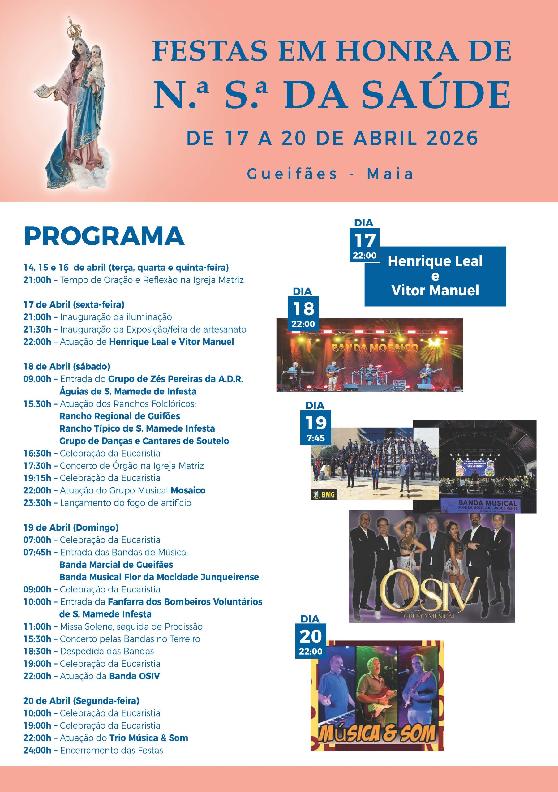 Apresentação do Cartaz e Programa das Festas em Honra de Nossa Senhora da Saúde – Comissão de Festas21-03-2026 Publicado por Vasco Ferreira on 21-03-2026 Categorias Nossa Senhora da Saúde Novidades Tags Fique a conhecer o cartaz deste ano. Partilhar0 Vasco Ferreira Related posts21-03-2026Apresentação do Cartaz e Programa das Festas em Honra de Nossa Senhora da Saúde – Comissão de FestasLer mais15-03-2026Parabéns pelos 84 Anos de Vida, Padre Orlando !Ler mais14-03-2026Reflita Comigo – IV Domingo da QuaresmaLer mais Comments are closed.