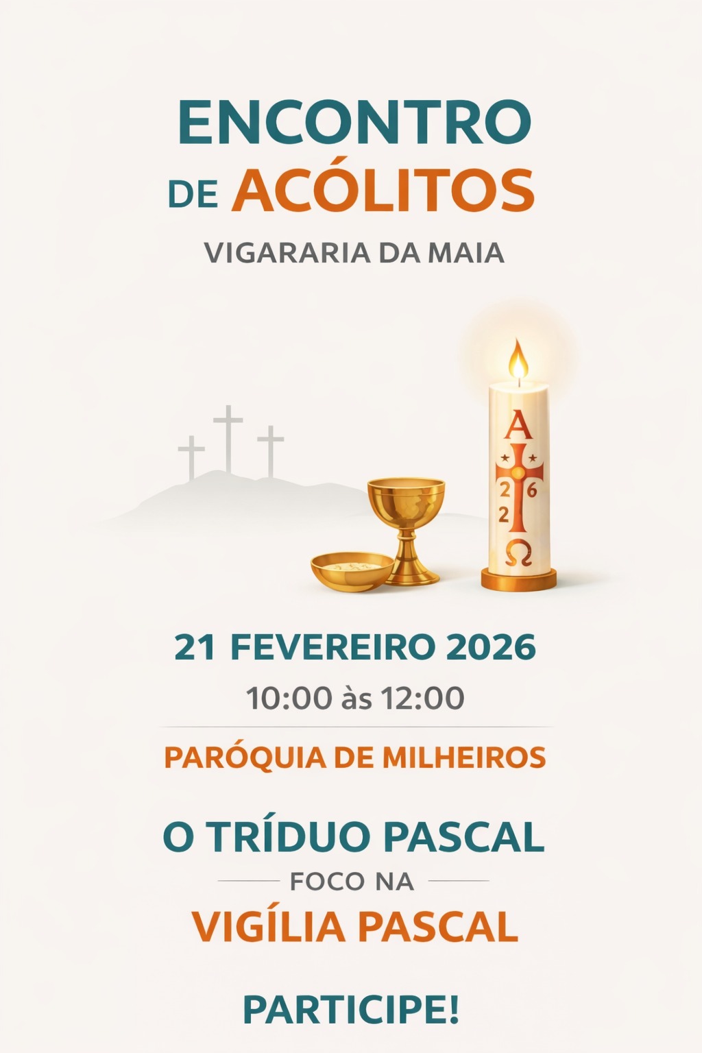 14-02-2026No próximo dia 21 de fevereiro de 2026, a Vigararia da Maia promove um Encontro de Acólitos, que terá lugar na Paróquia de Milheiros, entre as 10h00 e as 12h00.