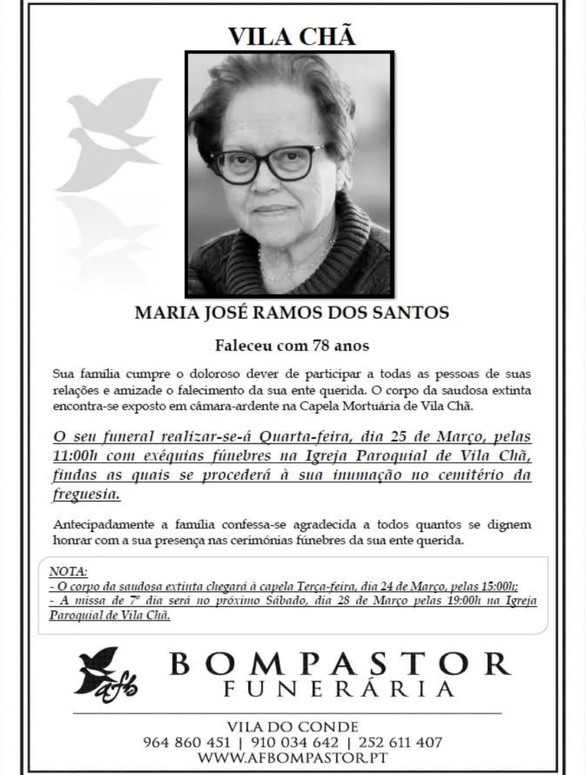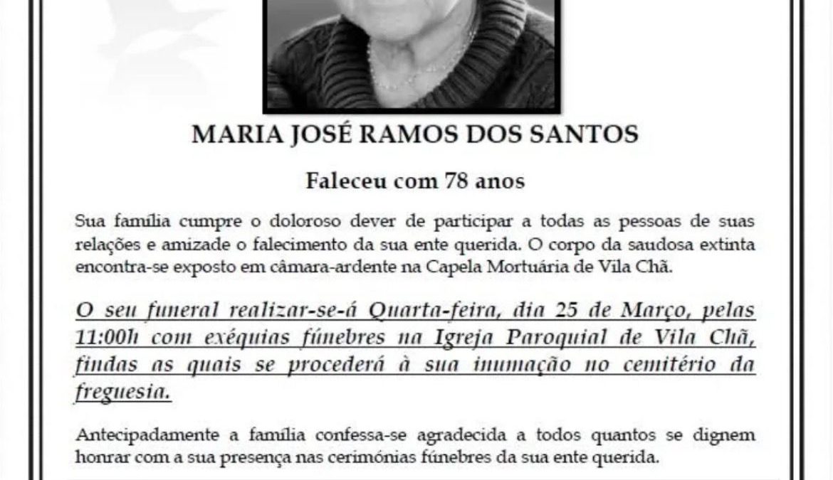 27-03-2026É com profundo pesar que a Paróquia comunica o falecimento de Maria José Santos, irmã do nosso Pároco, Padre Orlando.